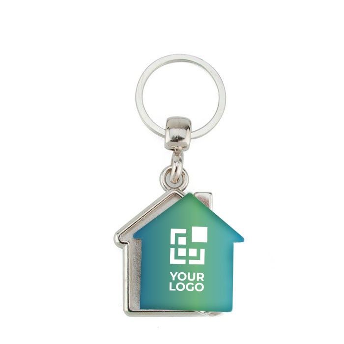 Llavero de metal con forma de casa, fabricado en Europa, ideal para empresas del sector inmobiliario. Este accesorio clásico permite personalización en ambas caras mediante un inserto de papel de 34x37 cm, protegido por una cubierta acrílica que asegura durabilidad y resistencia. El diseño práctico y elegante lo convierte en un regalo corporativo perfecto, destacando la identidad de su empresa. Además, cuenta con un servicio Express para entregas rápidas, asegurando que sus necesidades de marketing se cumplan de manera eficiente. Perfecto para eventos corporativos o como detalle para clientes y socios.