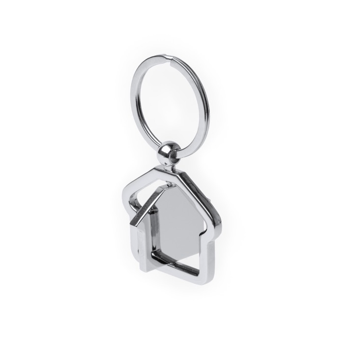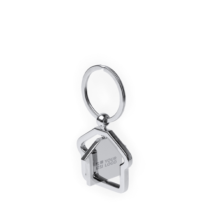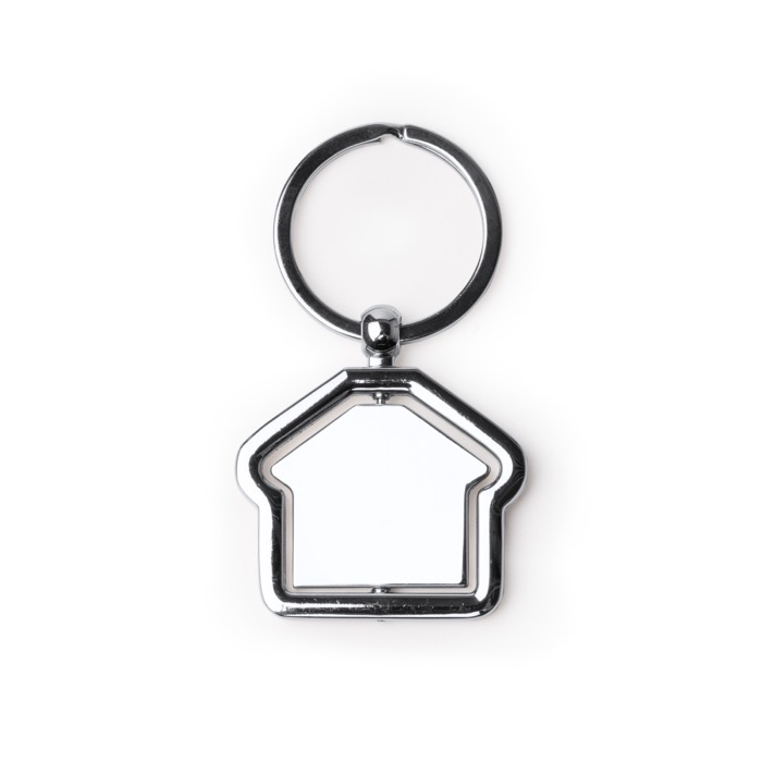 - Llavero metálico giratorio con forma de casa y marco fijo
