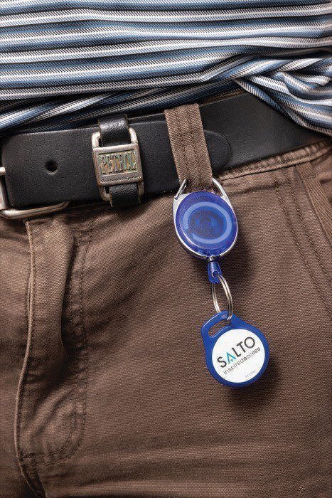 Llavero corporativo con clip enrollable y mosquetón para un acceso rápido y seguro