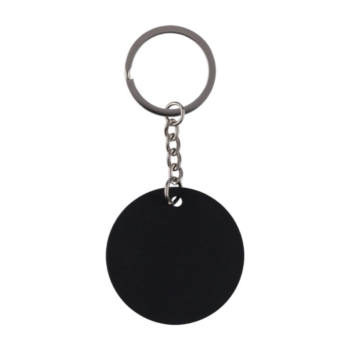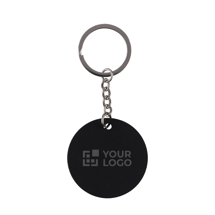 Llavero redondo con grabado a láser de efecto espejo y anilla metálica. Un soporte diario original y elegante para tu logo, con presentación kraft lista para entregar.
