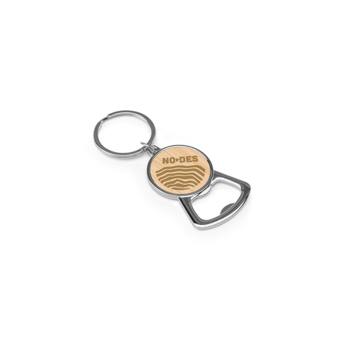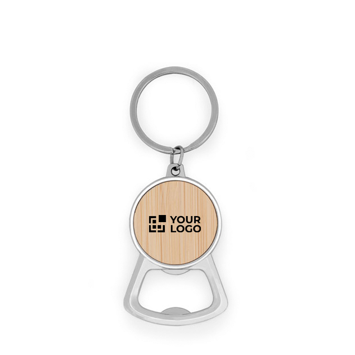 Llavero abrebotellas redondo de metal y bambú con anilla ø3,2 cm