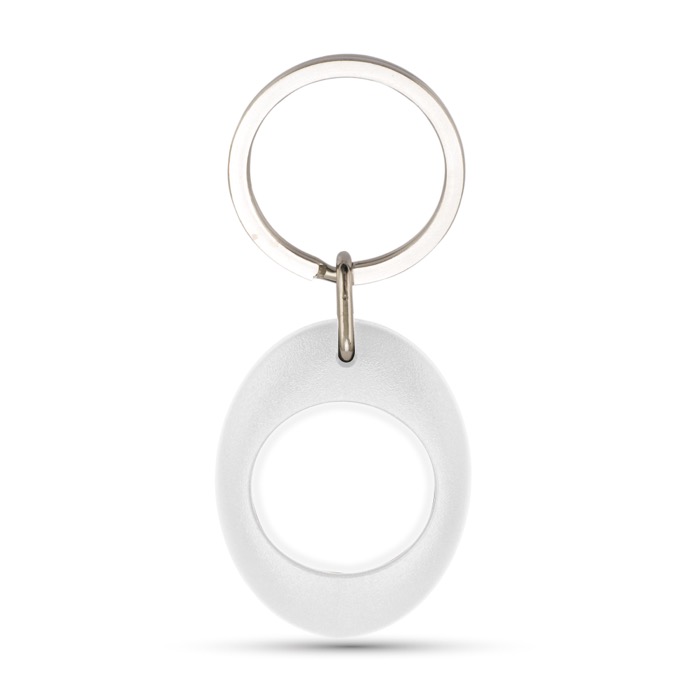Llavero de forma ovalada fabricado en Europa, con una moneda integrada para carrito de la compra. Este llavero se personaliza con una inserción de papel de 25 mm de diámetro, protegida por una cubierta acrílica, lo que permite mostrar logotipos o mensajes de manera clara y duradera. Su diseño práctico y funcional lo hace ideal para el uso diario. Además, cuenta con un servicio Express para entregas rápidas. Perfecto para empresas que buscan un artículo promocional útil y personalizable, ideal para ferias, eventos corporativos o como regalo para clientes y empleados.