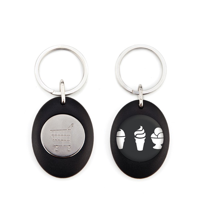 Llavero de metal redondo con ficha para el carro de compra KeyCoin