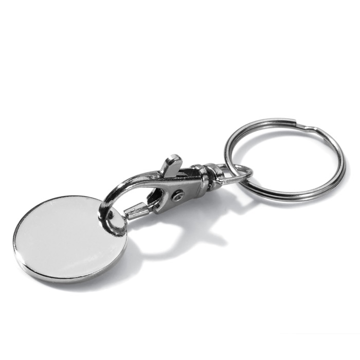 Llavero de metal redondo con ficha para el carro de compra