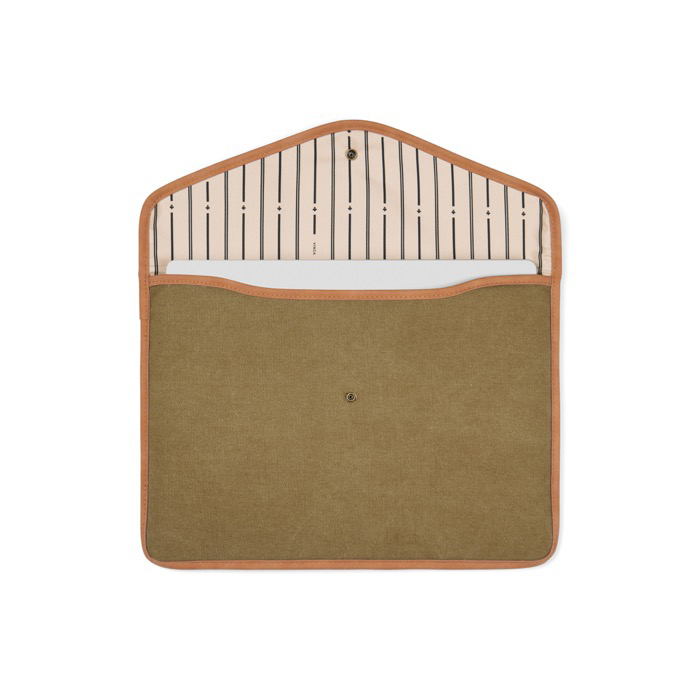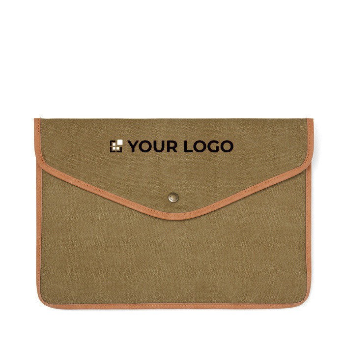 Funda para portátil de 14 pulgadas fabricada en lona reciclada, con detalles en poliuretano (PU), de la marca Vinga. Diseñada para ofrecer una protección segura y elegante, cuenta con un cierre de botón a presión y un acolchado que garantiza el almacenamiento seguro de su dispositivo. Con un gramaje de 500.0, esta funda es robusta y duradera. Certificada por el Global Recycled Standard (GRS), contiene un 37% de algodón reciclado y un 25% de poliéster reciclado, asegurando que toda la cadena de suministro cumple con estándares sostenibles. Ideal para empresas que buscan soluciones de almacenamiento seguras y sostenibles, esta funda puede ser utilizada como parte de un kit de bienvenida para empleados o como un regalo corporativo.