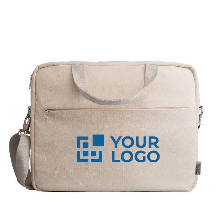 Bolsa de congresos fabricada en algodón reciclado de 330 gr/m2, diseñada para combinar estilo y funcionalidad. Cuenta con un asa corta y una asa larga regulable, ofreciendo versatilidad en su transporte. Su capacidad es apta para portátiles de hasta 16 pulgadas, convirtiéndola en una opción ideal para profesionales en movimiento. Este maletín, bestseller en su categoría, se suministra en una bolsa de plástico, aunque el embalaje puede variar para pedidos personalizados con impresión. Perfecta para eventos corporativos, esta bolsa puede ser utilizada como un regalo promocional sostenible, destacando el compromiso de su empresa con el medio ambiente.
