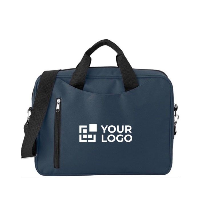 Maletín de poliéster (600 D) diseñado para portátiles de 14 pulgadas. Incluye un bolsillo frontal con cierre de cremallera en vertical, ideal para guardar documentos o accesorios de fácil acceso. Su gran compartimento acolchado con cierre de cremallera protege el portátil de golpes y arañazos. Equipado con dos asas cortas y una correa ajustable, ofrece versatilidad en el transporte, adaptándose a las preferencias del usuario. Suministrado en bolsa individual, es perfecto para presentaciones corporativas o como regalo empresarial. El servicio Express asegura una entrega rápida, ideal para necesidades urgentes de equipos de trabajo o eventos corporativos.