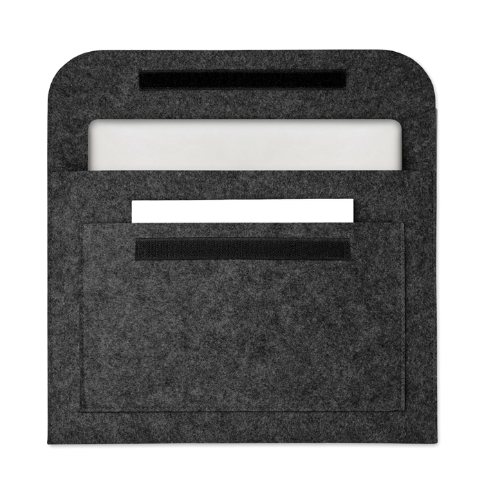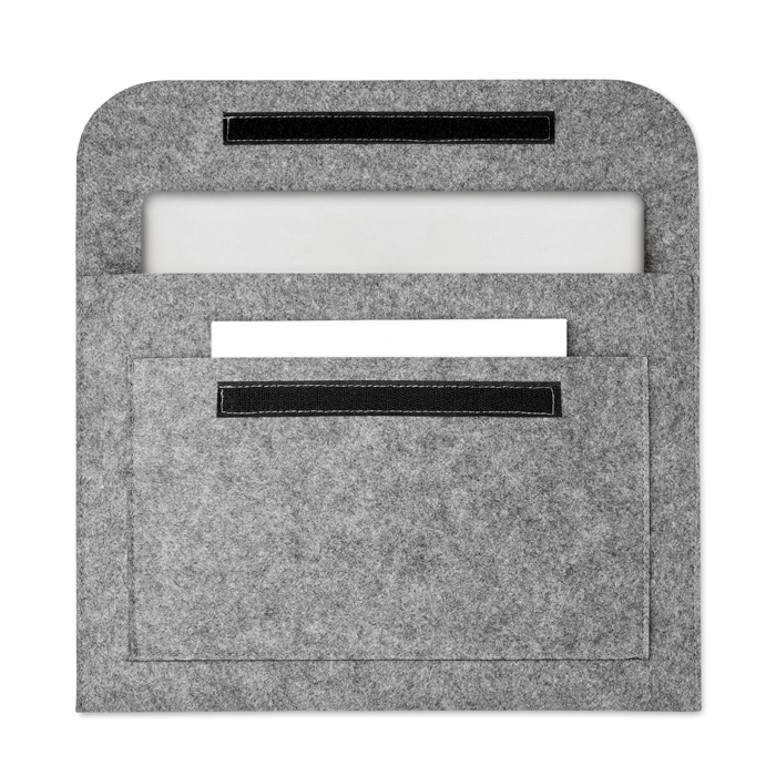 Porta documentos fabricado en felpa de RPET de 2 mm de grosor, diseñado para ofrecer una solución práctica y sostenible. Incluye un bolsillo frontal que facilita el acceso rápido a documentos esenciales y un cierre de velcro que asegura su contenido. Además, su tamaño permite el uso como funda para ordenadores portátiles de hasta 15 pulgadas, combinando funcionalidad y versatilidad. Este producto, que se distingue por su diseño innovador y materiales reciclados, es un bestseller y está disponible con servicio Express. Ideal para empresas que buscan opciones sostenibles para sus necesidades de almacenamiento y transporte de documentos o dispositivos.