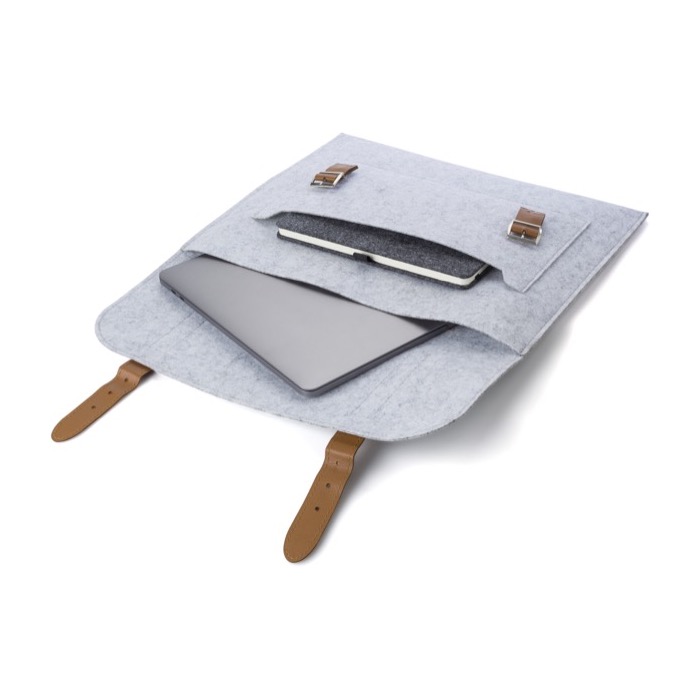 Portadocumentos de fieltro reciclado con detalles en cuero sintético