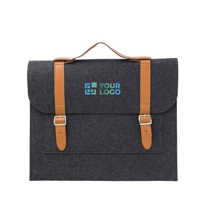 Portadocumentos de fieltro RPET con detalles de PU y cierre seguro con hebillas