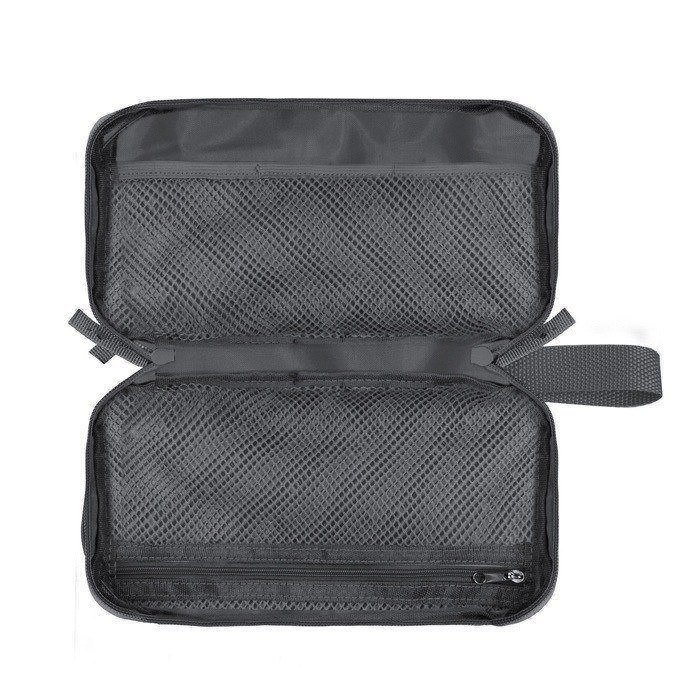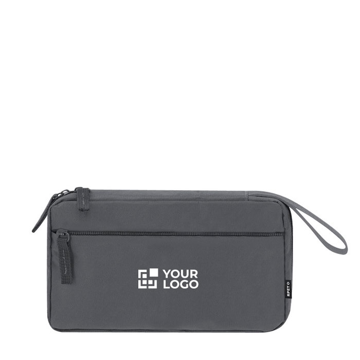 Estuche organizador fabricado en RPET 900D, un material reciclado que promueve la sostenibilidad. Diseñado con un bolsillo principal de apertura completa y doble tirador metálico, facilita el acceso rápido y seguro a su contenido. En su interior, cuenta con tres bolsillos con banda elástica, perfectos para mantener cables y accesorios en su lugar, y un bolsillo adicional con cierre de cremallera para objetos más pequeños o valiosos. Ideal para empresas que buscan soluciones prácticas y organizadas para el almacenamiento de equipos electrónicos. Útil en oficinas, eventos corporativos o como parte de kits de bienvenida para empleados.