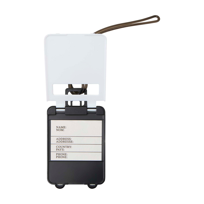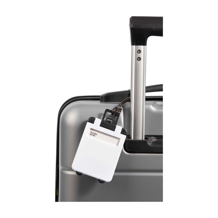 Etiqueta para equipaje de plástico resistente, pensada para identificar maletas de forma clara y rápida. Incorpora una ventana donde se colocan el nombre y los datos de contacto, útil para reducir extravíos y agilizar la gestión en desplazamientos. El cordón de sujeción ayuda a fijarla con seguridad a asas y tiradores, manteniendo la etiqueta en su sitio durante el trayecto. Una opción práctica para acciones de marca en viajes corporativos, ferias y eventos con asistentes.