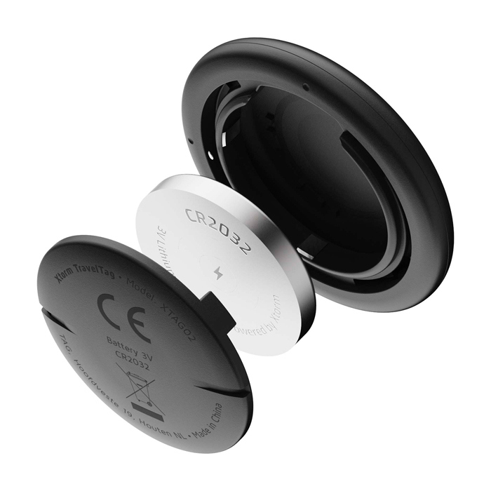 - Etiqueta de viaje Xtorm resistente al agua con batería reemplazable