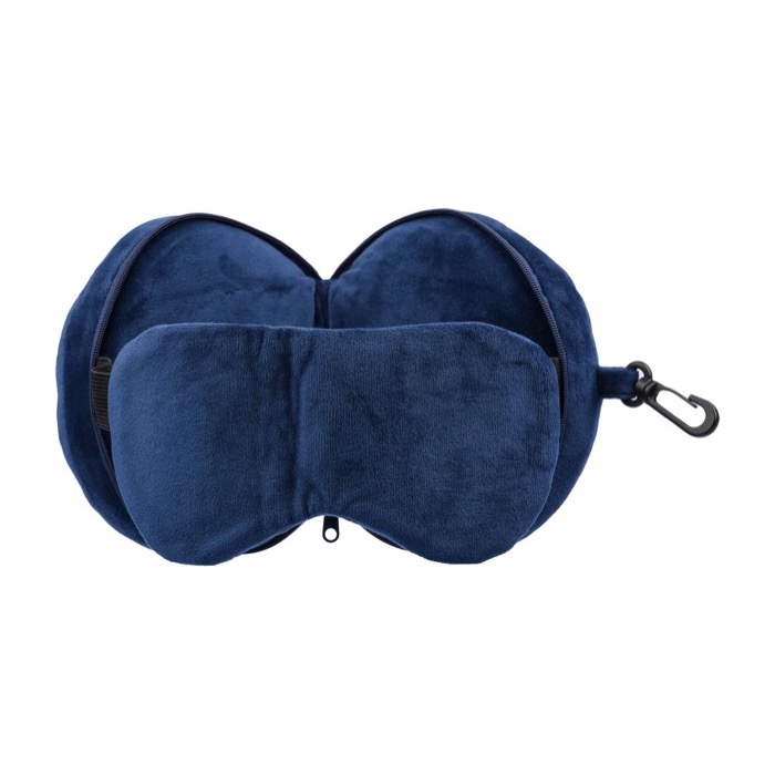 Almohada de viaje fabricada en poliéster, con un relleno que combina poliéster suave y algodón PP, diseñada para ofrecer comodidad en cada trayecto. Incluye un antifaz que facilita el descanso, permitiendo un sueño reparador incluso en movimiento. La almohada se cierra con una cremallera, asegurando que el relleno se mantenga en su lugar. Un mosquetón de PP permite sujetarla fácilmente a cualquier equipaje, evitando pérdidas y facilitando su transporte. Ideal para empresas que buscan mejorar la experiencia de viaje de sus empleados o como un regalo corporativo práctico y funcional.