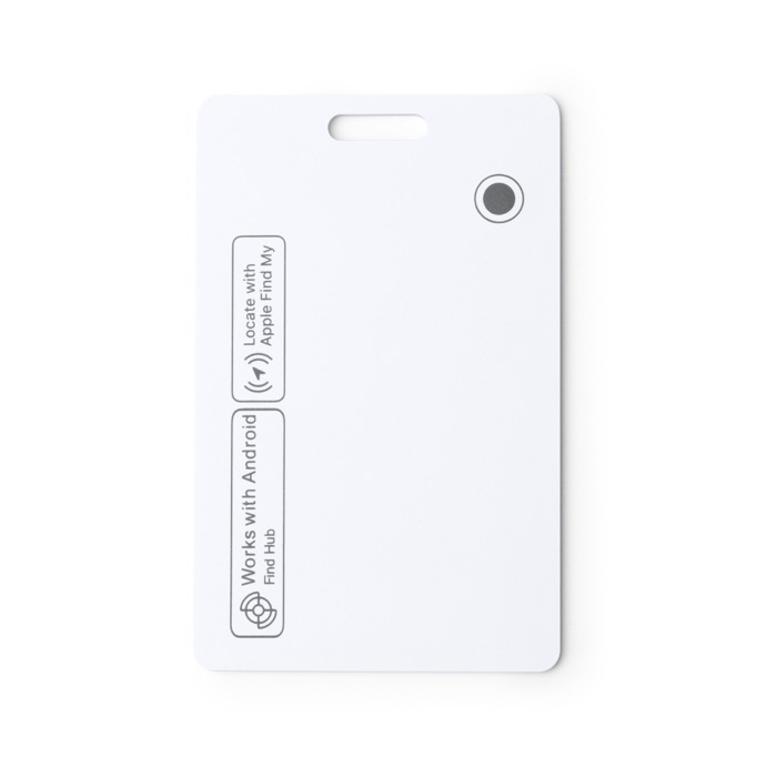 Localizador antiperdida de plástico en formato tarjeta, pensado para llevarlo en la cartera, mochila o porta acreditaciones sin ocupar espacio. Resiste salpicaduras y funciona con iOS y Android mediante app móvil y conexión Bluetooth, facilitando su control en el día a día. Integra búsqueda con señal acústica para localizarlo rápidamente cuando se pierde de vista. Se recarga con cargadores de carga inalámbrica, evitando cables y simplificando la logística. Útil para identificaciones internas, entregas en eventos o acciones de fidelización.