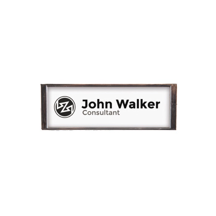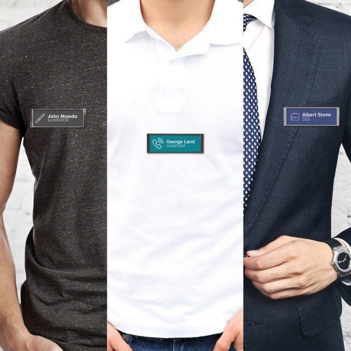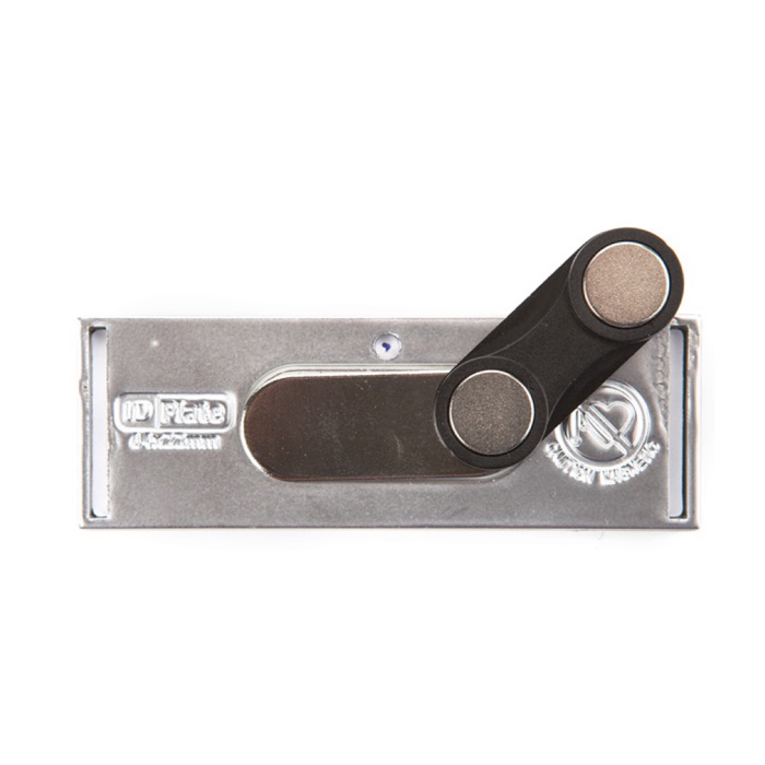 - Placa de identificación plateada con cierre magnético de alta calidad
