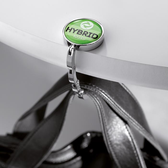 Cuenta con este cuelgabolsos con gancho para tu campaña