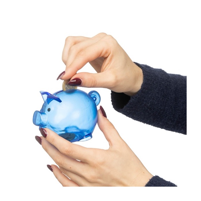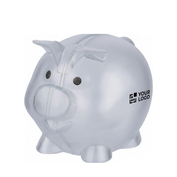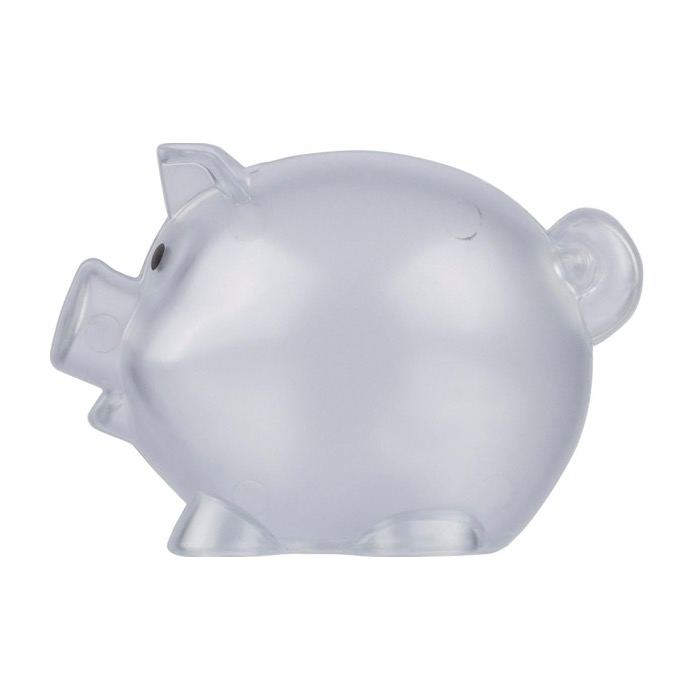 Hucha transparente con forma de cerdito para campañas en las que se quiera promover el ahorro. Un detalle que hará que tu logo quede a la vista en hogares y oficinas.