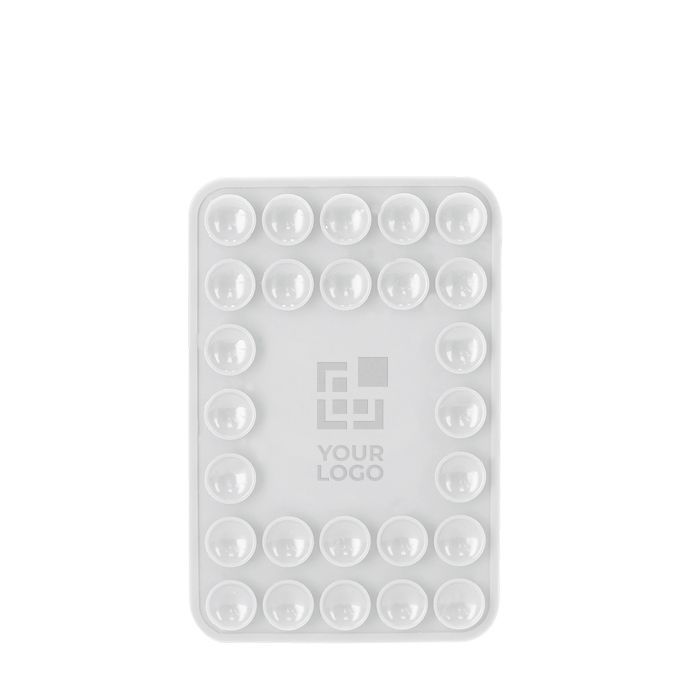 Soporte magnético para smartphone en silicona, pensado para mantener el móvil visible y sujeto en el día a día. Incorpora un frontal con terminación tipo ventosa que ayuda a fijarlo sobre superficies lisas, facilitando su colocación en escritorio, mostrador o zonas de trabajo. El sistema magnético permite poner y retirar el teléfono con rapidez, sin maniobras incómodas. Pieza compacta y fácil de transportar, útil para reuniones, puntos de atención o tareas de oficina. Encaja bien como detalle corporativo con logo en acciones de marca.