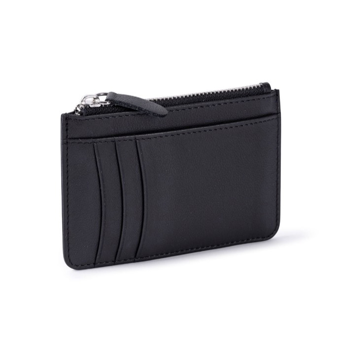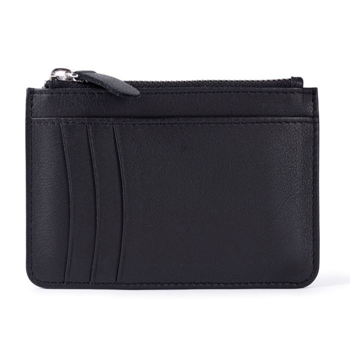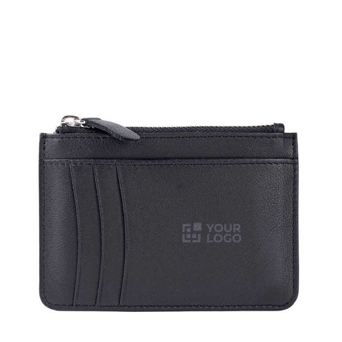 - Cartera-tarjetero de piel auténtica con cierre de cremallera