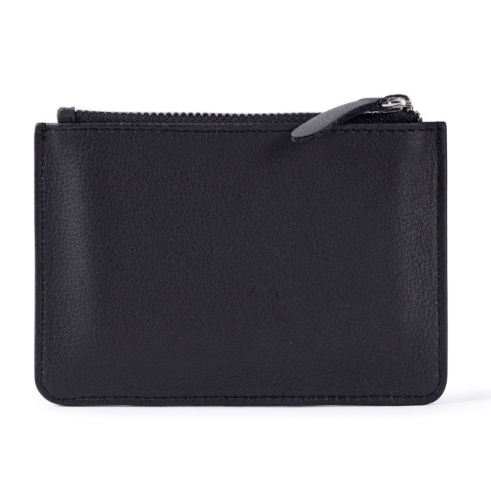 Cartera-tarjetero de cuero negro con cierre de cremallera en el medio