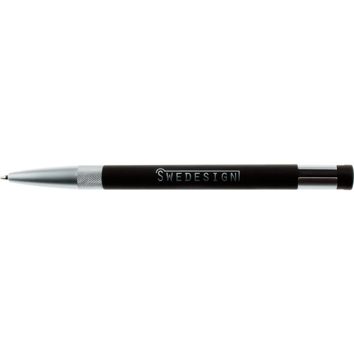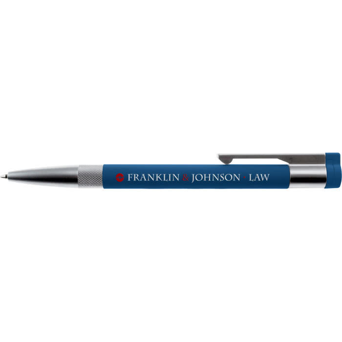 Bolígrafo USB con carcasa metálica con acabado de goma. El pendrive está oculto en su interior. Por fuera, es un accesorio de oficina, para escribir y tomar notas en cualquier reunión. Por dentro, es un sistema de gestión eficaz de archivos. Es un merchandising todoterreno para que tus equipos cuenten con una herramienta eficaz que les ayude en su día a día. La conexión del USB es 2.0, pensada para archivos más pequeños, y se puede imprimir tanto a todo color como con grabado a láser.