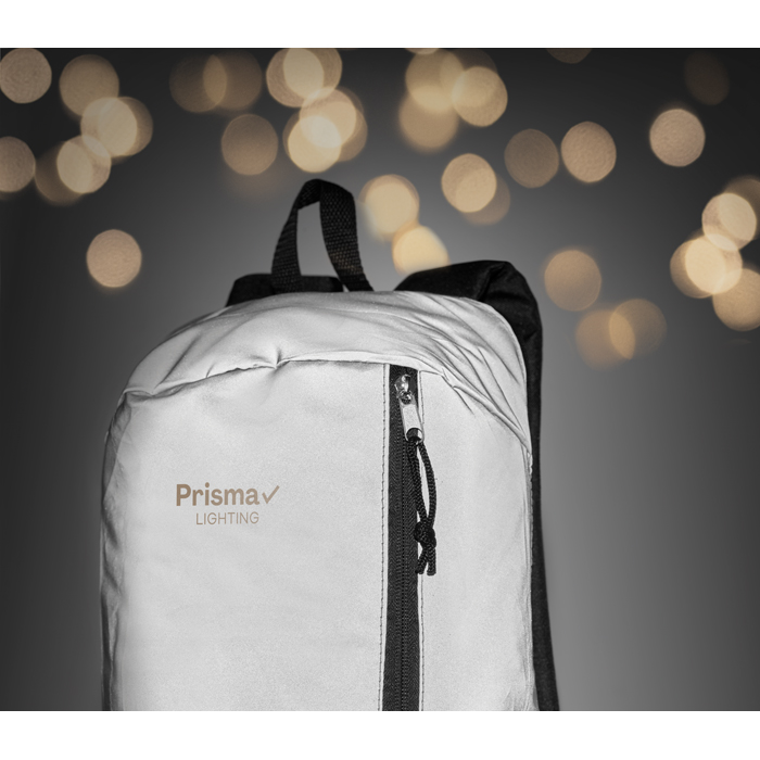 - Mochila reflectante en poliéster con frontal altamente visible