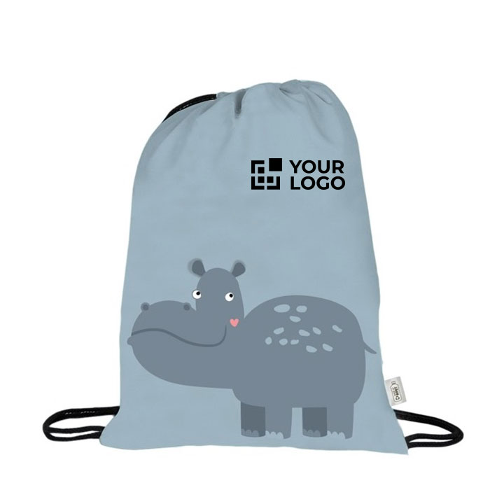 Con esta mochila de cuerdas pensada para acompañar a los más peques en cualquier ocasión, tu marca conquistará a niños y familias. En concreto, se trata de una bolsa estilo petate confeccionada con poliéster RPET 190T cuya superficie cuenta con originales y animados diseños de animales. Está disponible en varios colores, tiene capacidad suficiente para transportar las pertenencias de los niños en excursiones o actividades y puede personalizarse con tu logo mediante serigrafía. Asimismo, integra una etiqueta con el distintivo de RPET, reforzando, de este modo, el compromiso de tu empresa con la circularidad.