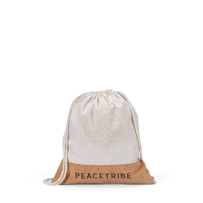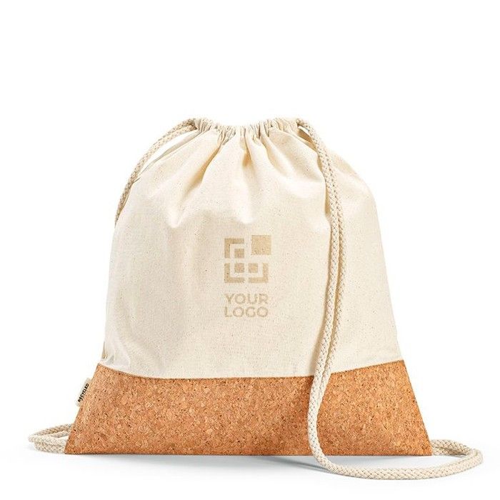 Bolsa de cuerdas de algodón reciclado con fondo de corcho 180 g/m2