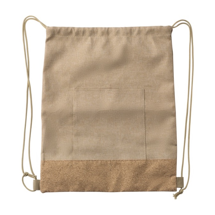 Bolsa para empleados de cuerdas de RPET y corcho con bolsillo delantero