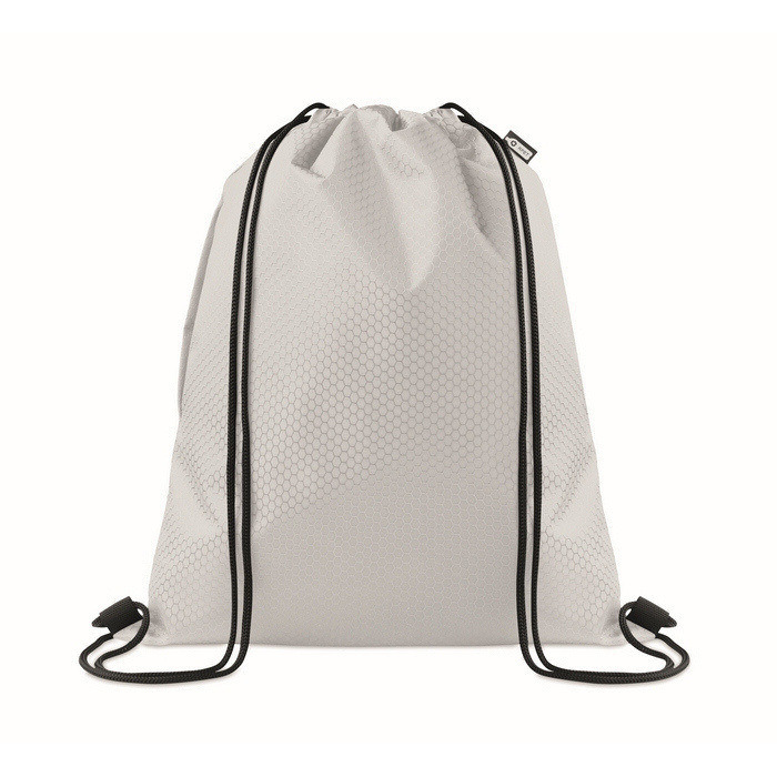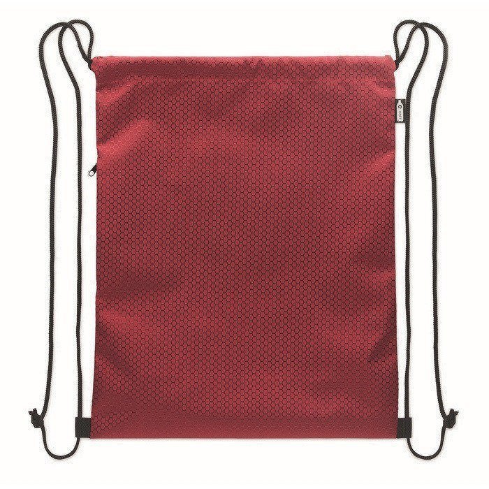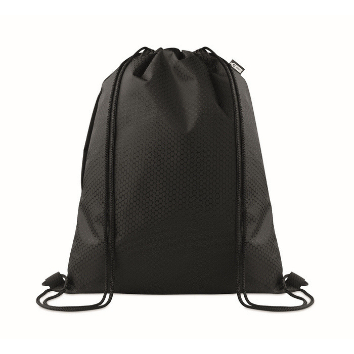 - Bolsa mochila de cuerdas RPET 420D con bolsillo lateral