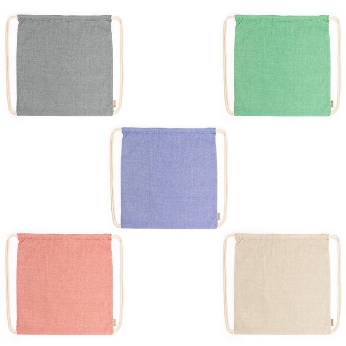 Mochila de cordones fabricada en algodón reciclado, con un gramaje de 120 g/m², ofrece un acabado jaspeado que le da un toque distintivo. Los cordones en color natural complementan su diseño, asegurando comodidad y estilo. Disponible en una variedad de colores, esta mochila unisex es ideal para cualquier ocasión. Su material sostenible refuerza el compromiso con el medio ambiente, lo que la convierte en una opción responsable para las empresas. Perfecta para eventos corporativos, puede ser utilizada como un regalo promocional que resalte la identidad de marca de manera efectiva.