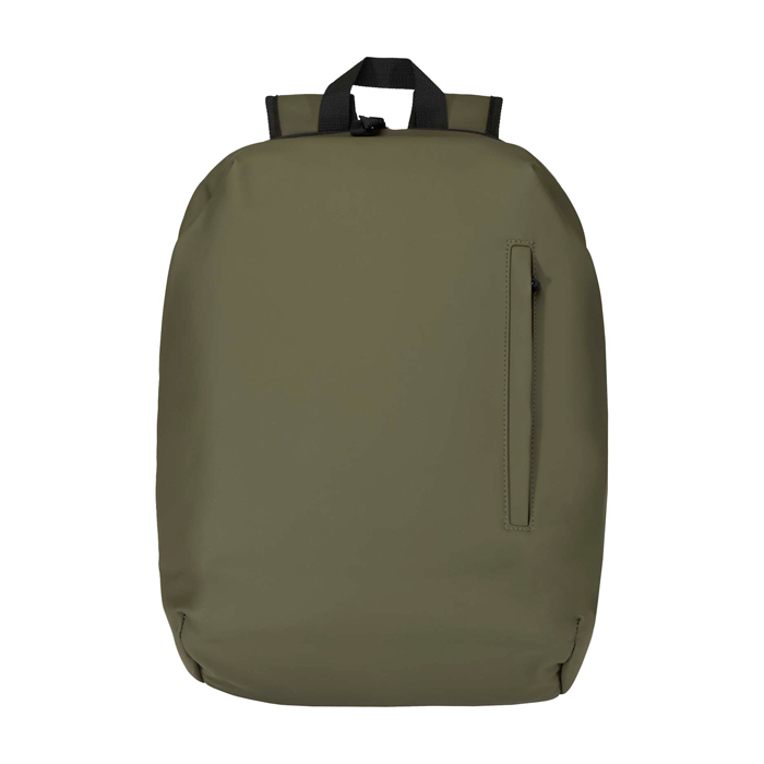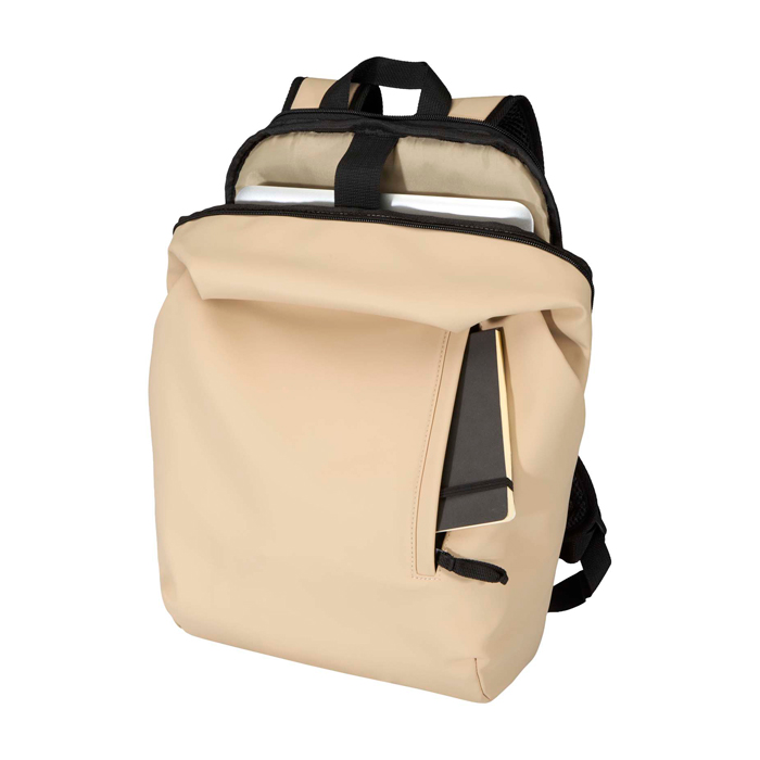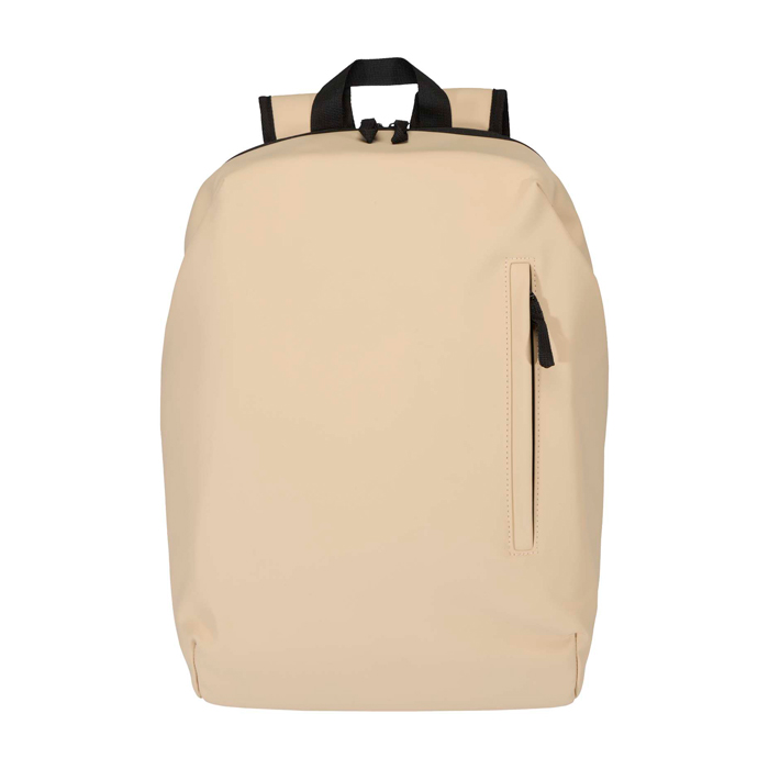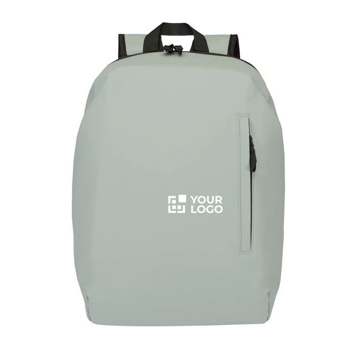 Mochila antirrobo con exterior en piel sintética de poliuretano reciclado y forro de plástico reciclado a juego, pensada para llevar tus pertenencias protegidas en el día a día. Incorpora compartimento para portátil de 15 pulgadas con acceso trasero, dos bolsillos laterales aerodinámicos y bolsillo frontal con cremallera impermeable para tener a mano lo imprescindible. El panel trasero transpirable mejora la comodidad en trayectos largos y el diseño ayuda a mantener el contenido seco. Útil para desplazamientos al trabajo, viajes corporativos y eventos de marca.