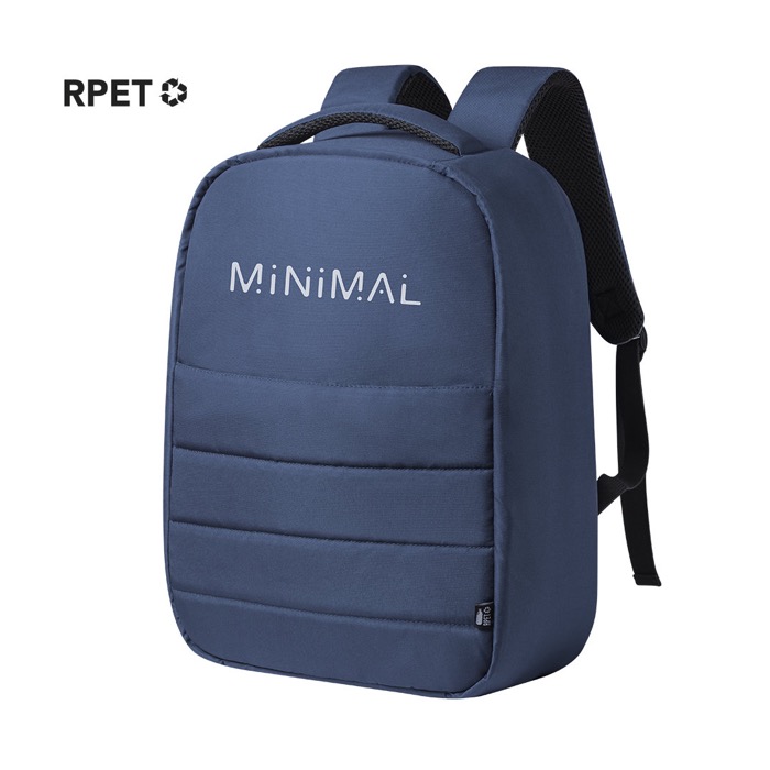 Mochila antirrobo fabricada en resistente RPET 300D. Diseñada con un bolsillo antirrobo y un práctico accesorio para ajustarla a un trolley, esta mochila ofrece seguridad y comodidad. En su interior, cuenta con compartimentos acolchados que protegen portátiles de hasta 15 pulgadas y tablets de hasta 12 pulgadas. Las cintas de hombros y la espalda también están acolchadas, garantizando un transporte cómodo durante todo el día. El distintivo RPET resalta su compromiso con el uso de materiales reciclados. Ideal para personalizar con el logotipo de tu empresa, es perfecta para eventos corporativos o como regalo promocional.