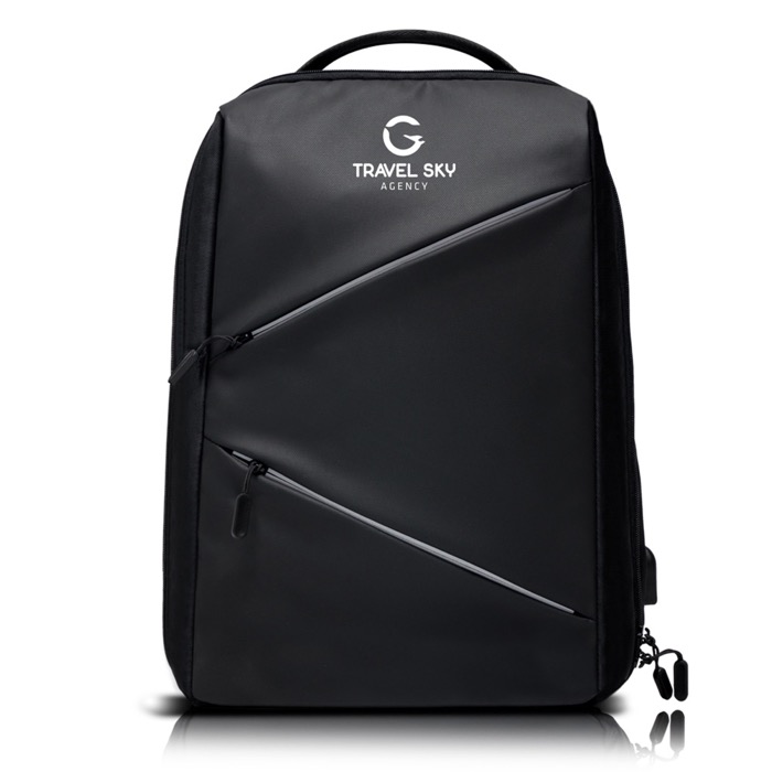 Mochila en tarpaulin para ordenador, diseñada para ofrecer seguridad y estilo. Con un diseño moderno y refinado, esta mochila antirrobo cuenta con dos cremalleras frontales reflectantes e impermeables, ideales para mantener tus pertenencias seguras y secas. Incluye un puerto USB para cargar dispositivos sobre la marcha, gracias al cable interno que se conecta a tu Power bank. El tejido suave y la espalda acolchada con bolsillo secreto garantizan comodidad durante el transporte. Además, la correa trolley facilita su uso en viajes de negocios. En su interior, una bolsa para portátil de hasta 15 pulgadas y varios bolsillos organizan tus accesorios. Perfecta para empresas que buscan ofrecer a sus empleados una solución práctica y segura para el transporte de tecnología.