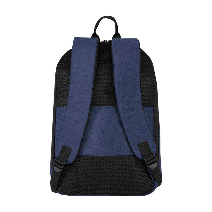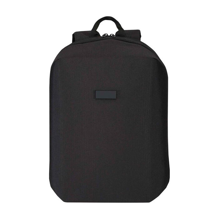 Mochila de poliéster jacquard reciclado con forro de plástico reciclado (RPET) a juego, pensada para desplazamientos diarios con más control. Incorpora cremalleras con bloqueo (candado no incluido) y bolsillo trasero oculto que también funciona como correa para trolley. El tejido repele el agua ante lluvia ligera. En el interior, ofrece compartimento acolchado para portátil hasta 15in, bolsillo para tableta, espacio para bolígrafos y organización para accesorios. Tirantes acolchados y panel trasero transpirable mejoran el confort. Útil para equipos en movilidad, eventos y acciones de marca en oficina.