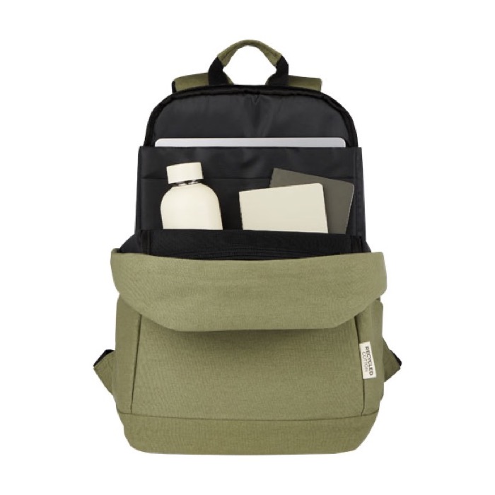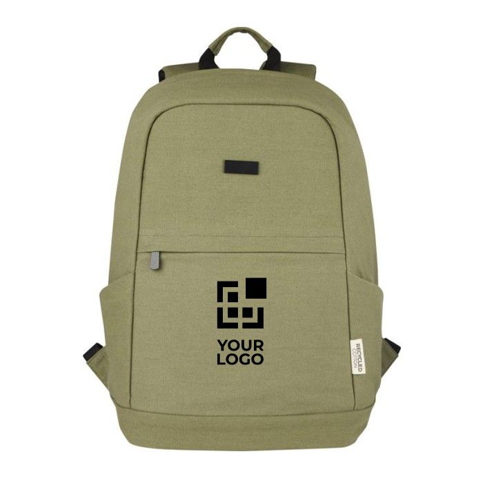 Mochila antirrobo fabricada con lona reciclada certificada GRS (Global Recycled Standard) y forro de RPET, diseñada para ser duradera y sostenible. Incluye una funda para tableta y un compartimento para portátil de hasta 15,6 pulgadas, ofreciendo seguridad y comodidad para dispositivos electrónicos. Con una capacidad de 18,000 ml, cuenta con bolsillos internos y laterales, además de un acceso oculto para mayor protección. La placa metálica decorativa permite personalizarla con el logotipo de la empresa. Sin embalaje individual, su gramaje es de 330 g. Ideal para empresas que buscan regalos corporativos ecológicos y funcionales, con servicio Express disponible.
