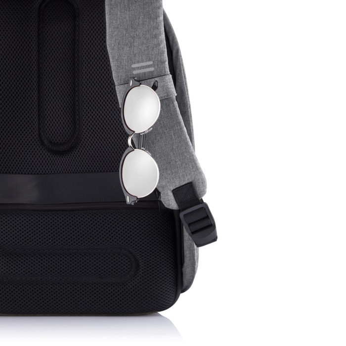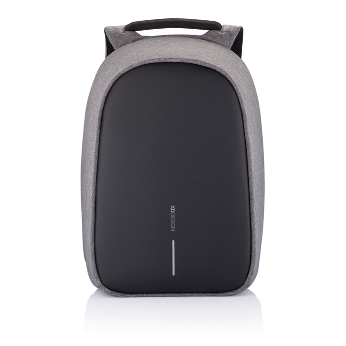 Mochila antirrobo de la línea Bobby Hero. Características clave: protección a prueba de cortes, cierres de cremallera ocultos y bolsillos. También cuenta con un puerto de carga USB integrado, tela repelente al agua, tiras de seguridad iluminadoras y una correa para equipaje. En el interior hay compartimentos acolchados para un portátil de 15,6 ”, una tablet de hasta 12,9” y el resto de tus pertenencias. Hecho de materiales RPET y trazador AWARE ™ (garantiza el uso de materiales reciclados y la reducción de agua para su producción, mediante el uso del trazador físico disruptivo AWARE y la tecnología blockchain). Protección RFID. Cada Bobby Hero ahorra 16 litros de agua y reutiliza 28 botellas de plástico. Diseño registrado®