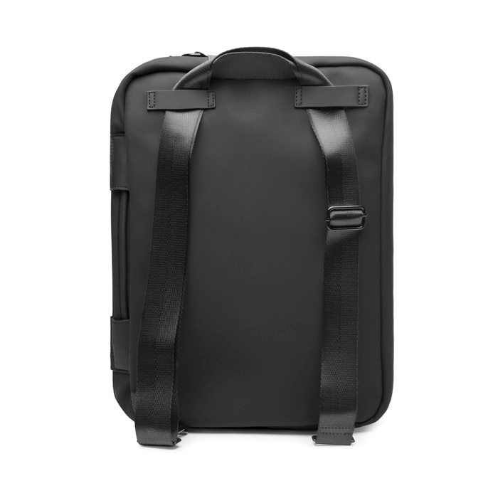 Mochila convertible 2 en 1 de poliéster reciclado con certificación RCS (Recycled Claim Standard). pensada para alternar entre reuniones y desplazamientos. Se usa como maletín para ordenador. bandolera o mochila según el momento. con correas ajustables y asa integrada para un manejo cómodo. Incluye bolsillo exterior de acceso rápido. bolsillo interior para pequeños accesorios y compartimento para portátil compatible con la mayoría de equipos de hasta 15". Opción práctica para onboarding. eventos corporativos o merchandising con logo.