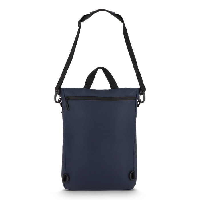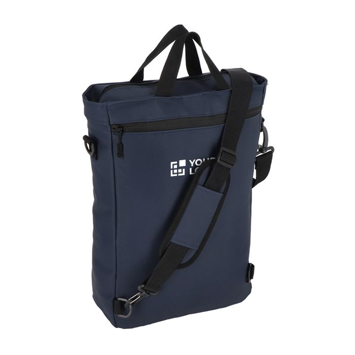 Mochila de piel sintética con forro interior 210D, pensada para transportar portátil y documentos en el día a día. Permite llevarse como mochila o como bandolera, según el tipo de desplazamiento o el código de vestimenta. Incorpora bolsillo frontal con cremallera para acceso rápido a accesorios, compartimento acolchado para portátil de 15,6'' y organizador interior para mantener cargadores, bolígrafos y tarjetas ordenados. Opción práctica para acciones de bienvenida, eventos y uso de oficina con logo corporativo.