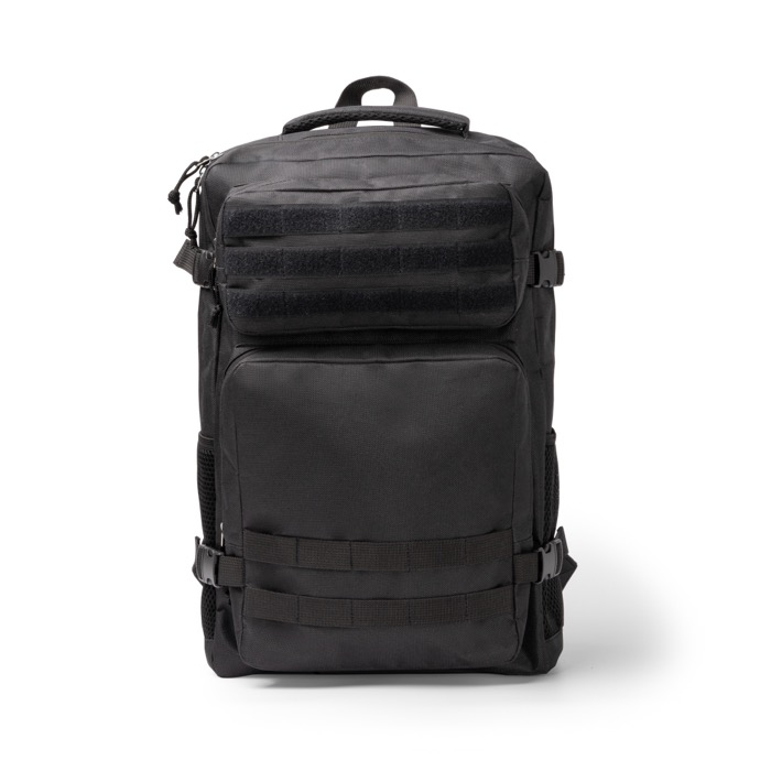 Mochila deportiva de plástico reciclado 600D, pensada para el día a día y para desplazamientos con material de trabajo. Incorpora varios bolsillos frontales en distintos tamaños para organizar accesorios y documentación sin perder tiempo. El compartimento principal abre por completo para facilitar el acceso y suma un espacio específico para portátil de hasta 17". Incluye cintas laterales de ajuste, bolsillos de rejilla para botellas y puntos de anclaje para asegurar objetos extra. Espalda y asas acolchadas para un transporte cómodo. Útil para acciones de marca en ferias, equipo comercial o onboarding.