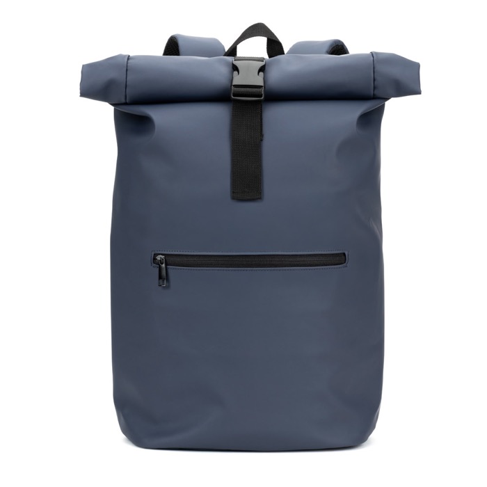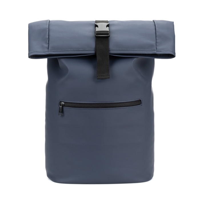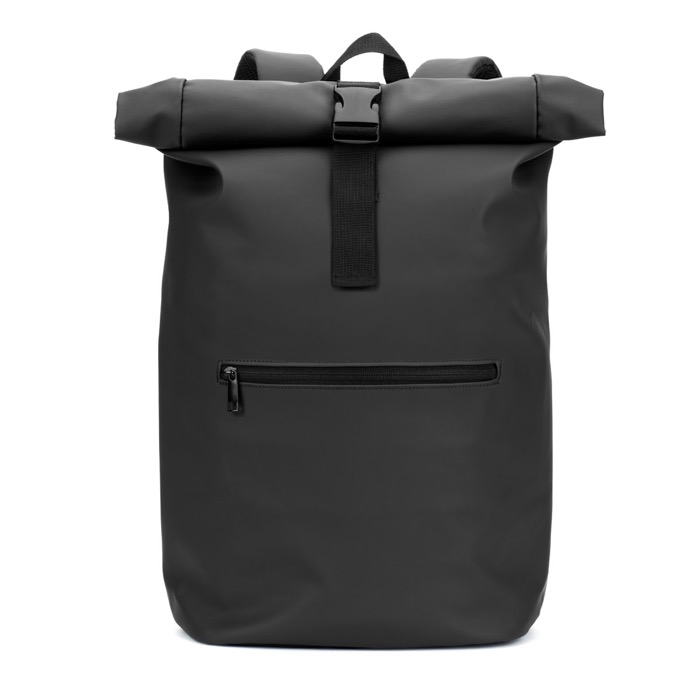 Mochila enrollable de piel sintética con interior de poliéster 210D, pensada para el uso diario en entorno profesional. El cierre enrollable permite ajustar la capacidad según lo que necesites llevar, manteniendo un formato compacto. Incluye bolsillo para portátil de 16" y un compartimento principal para organizar documentos y accesorios. El bolsillo frontal con cremallera facilita el acceso a objetos pequeños. El panel trasero acolchado mejora la comodidad e incorpora asa para trolley, útil en viajes de trabajo y eventos corporativos.