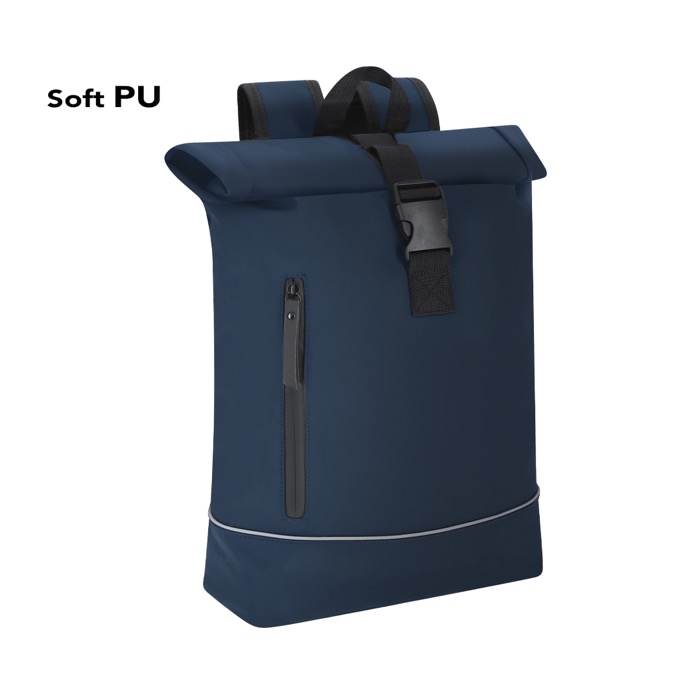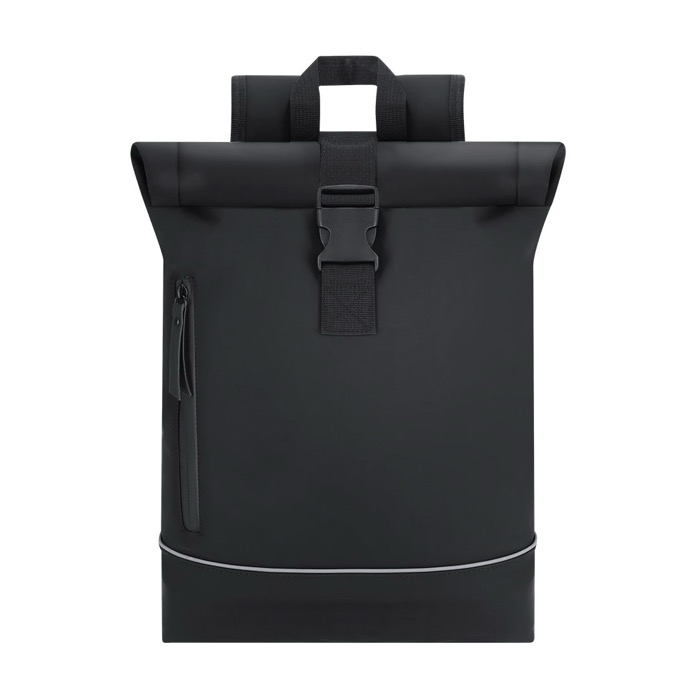 Mochila de piel sintética suave y resistente, pensada para desplazamientos diarios y viajes de trabajo. Incorpora tira reflectante frontal para mejorar la visibilidad y cierre enrollable con cremallera y hebilla ajustable, que ayuda a mantener el contenido protegido. El interior ofrece gran capacidad e incluye compartimento acolchado para portátil de hasta 15". Suma bolsillo frontal resistente al agua, espalda acolchada y tirantes cómodos. La cinta trasera permite fijarla al trolley, útil en eventos, ferias o movilidad corporativa.