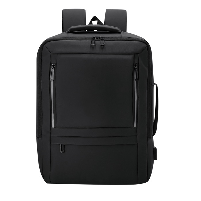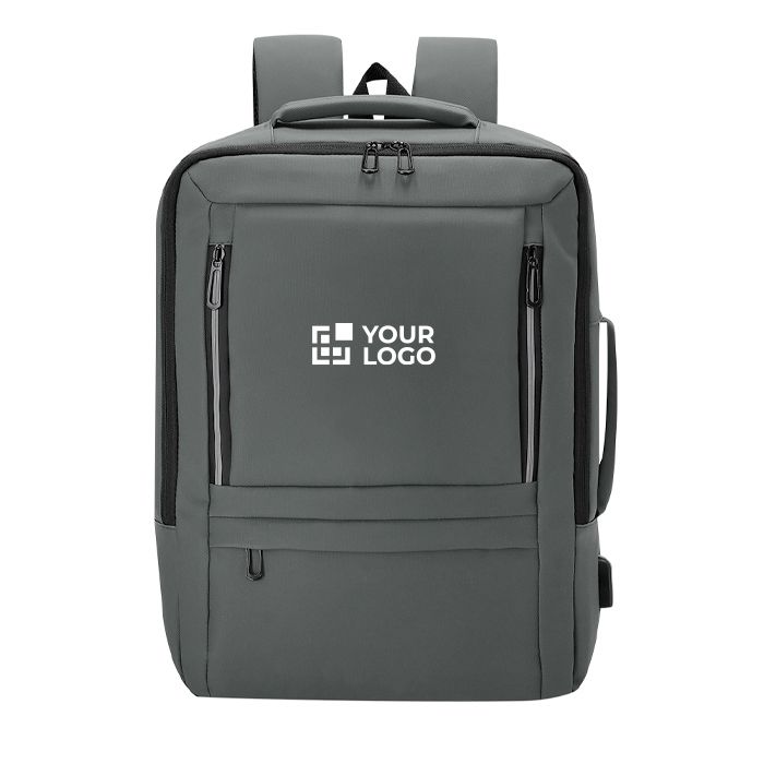 Mochila extensible de piel sintética, pensada para el día a día en oficina y desplazamientos. Incorpora cierre de cremallera de doble tirador y un sistema de ampliación para ganar capacidad cuando lo necesites. El interior incluye compartimento acolchado para portátil de hasta 15" y espacio para tablet de hasta 10". En el frontal añade tres bolsillos y dos tiras reflectantes para mejorar la visibilidad. Lleva tirantes acolchados, transpirables y ajustables, asas superior y lateral, cinta para trolley y entrada USB. Recurso práctico para merchandising corporativo y eventos.