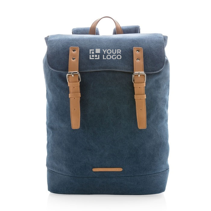 Mochila para portátil de lona sin PVC. Diseñada para viajes casuales, esta mochila permite transportar un portátil de hasta 15.6 pulgadas en su compartimento acolchado, asegurando protección y comodidad. La parte superior cuenta con cierres magnéticos en imitación de cuero, ofreciendo un acceso rápido y seguro. Con una capacidad de 19,000 ml, es ideal para llevar todo lo necesario en desplazamientos ocasionales. Se suministra en bolsa y a granel, facilitando su distribución. Como bestseller, es una opción confiable y popular. Perfecta para empresas que buscan un regalo exclusivo y práctico para sus empleados o clientes.