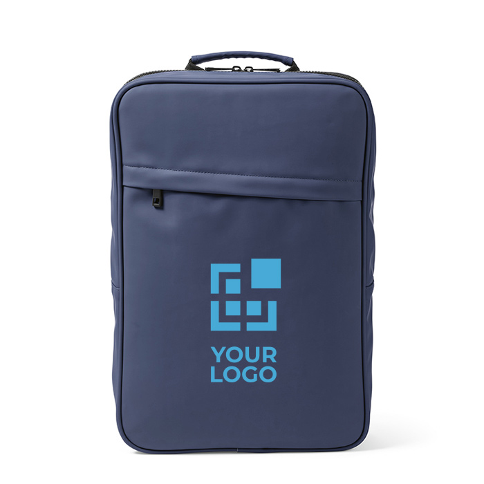 Mochila de PU reciclado, diseñada para empresas que valoran la sostenibilidad. Con una capacidad de 16 litros, ofrece un compartimento único con un bolsillo específico para portátiles de hasta 15,6 pulgadas, ideal para mantener sus dispositivos seguros y organizados. La cremallera frontal en diagonal termo inyectada asegura un acceso rápido y fácil. La parte trasera acolchada y la correa para trolley proporcionan comodidad durante el transporte, mientras que el asa reforzada garantiza durabilidad. Suministrada en una bolsa de algodón, esta mochila combina estilo y funcionalidad con conciencia ambiental. Perfecta para eventos corporativos o como regalo de empresa, destacando su compromiso con la sostenibilidad.