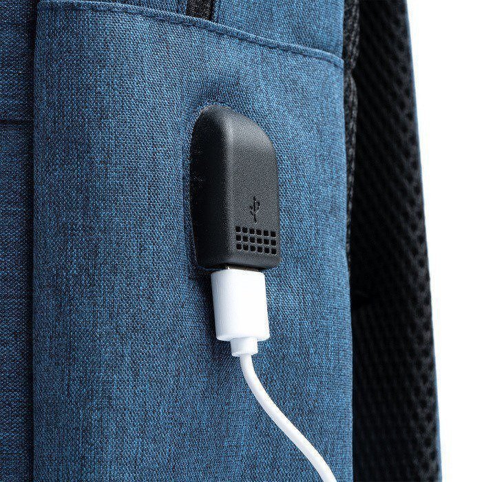 Mochila de poliéster reciclado RPET 600D con diseño vigoré. Cuenta con un espacioso bolsillo principal acolchado, perfecto para proteger un portátil o tablet durante el transporte. Incorpora una práctica salida USB que permite conectar un power bank (no incluido), facilitando la carga de dispositivos móviles en movimiento. Además, dispone de un bolsillo frontal y otro lateral para un acceso rápido a objetos esenciales. Las tiras y la espalda están acolchadas, garantizando comodidad durante su uso prolongado. Ideal para empresas que buscan soluciones prácticas y sostenibles, esta mochila es perfecta para empleados que trabajan de manera híbrida o en constante movimiento.