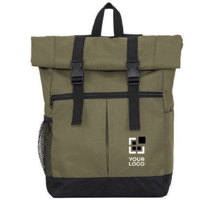 Mochila de poliéster 900D con tapa enrollable y cintas de cierre