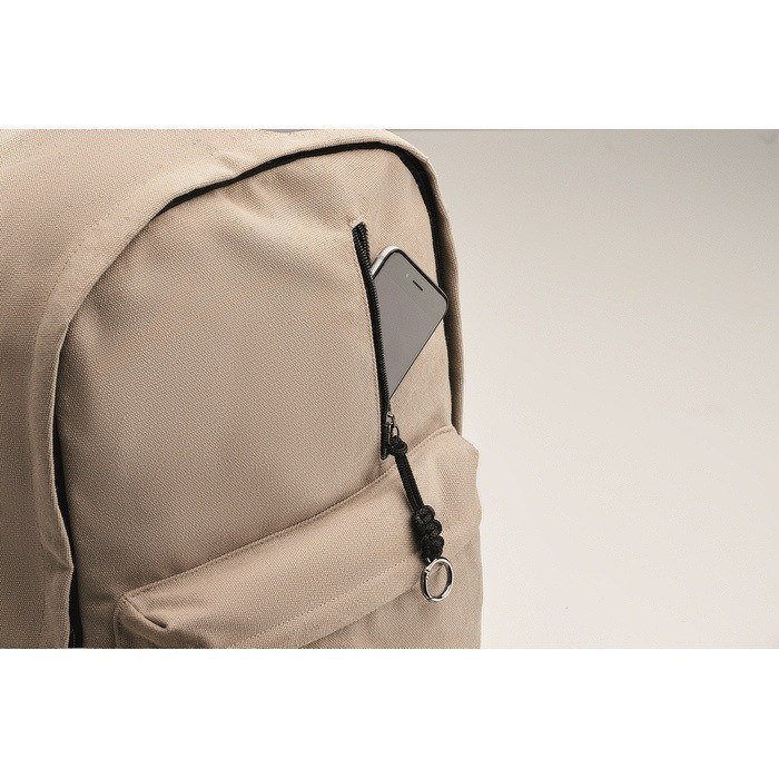 Mochila para portátil de 15 pulgadas fabricada en lona lavada reciclada. Incluye un pequeño bolsillo frontal con cremallera para guardar objetos esenciales y dos bolsillos laterales para acceso rápido. La espalda y las hombreras están acolchadas, ofreciendo comodidad durante el transporte. El panel trasero y la parte inferior también están reforzados para mayor durabilidad. Con un gramaje de 450 gr/m², es robusta y resistente. Además, el servicio Express asegura una entrega rápida. Ideal para empresas que buscan soluciones sostenibles, esta mochila es perfecta para transportar equipos de trabajo o como regalo corporativo en eventos.