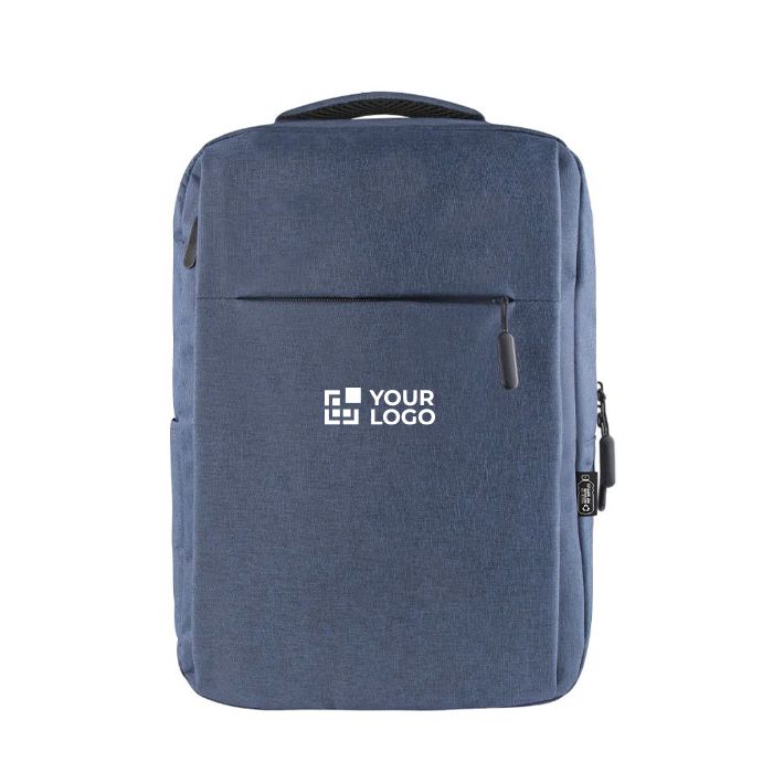 ¿Buscas equipar a tu trabajadores con una mochila práctica y que los convertirá en embajadores de tu marca? Opta por esta mochila de poliéster rPET, la cual dispone de acolchado interior y trasero apto para ordenadores portátiles de hasta 15 pulgadas. También tiene 2 compartimentos frontales, permitiendo así que se la lleven a cualquier viaje corto que hagan por negocios. Está disponible en varios colores formales y podrás imprimir o bordar tu logotipo en la parte frontal.
